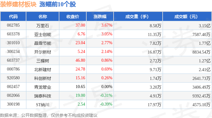 以上内容为证券之星据息拾掇,拆建筑材板块个股涨跌见下表:从资金流向上来看,散户资金净流出5.85万元。扬子新材领跌。